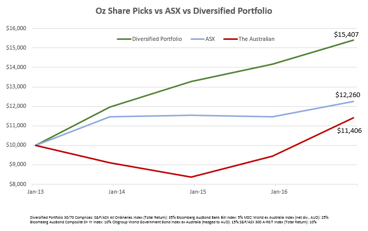 While we’re happy to congratulate The Australian on their past two years, their outperformance can be attributed to one company’s performance in 2015 and two companies in 2016. Does that sound like good judgement or good luck?